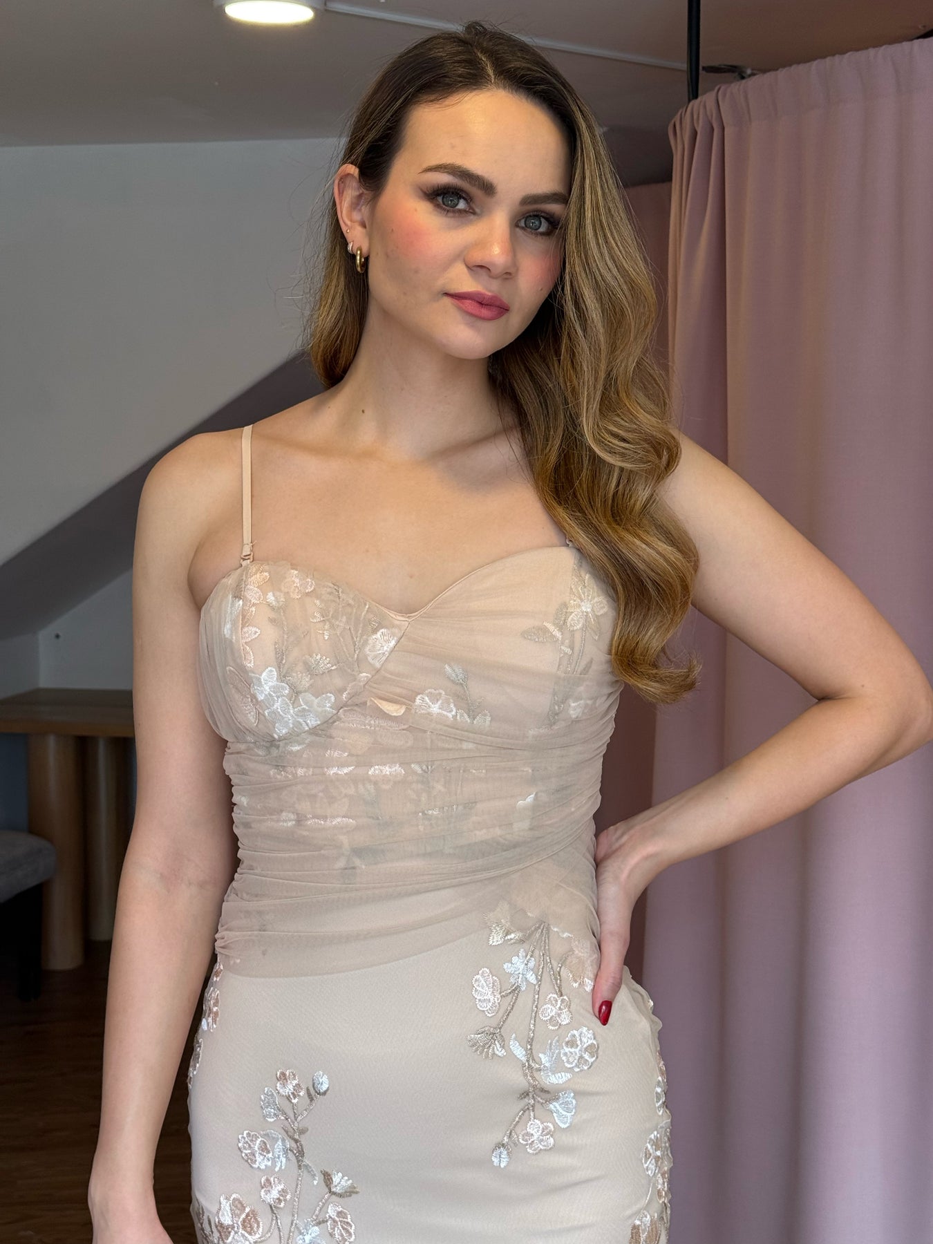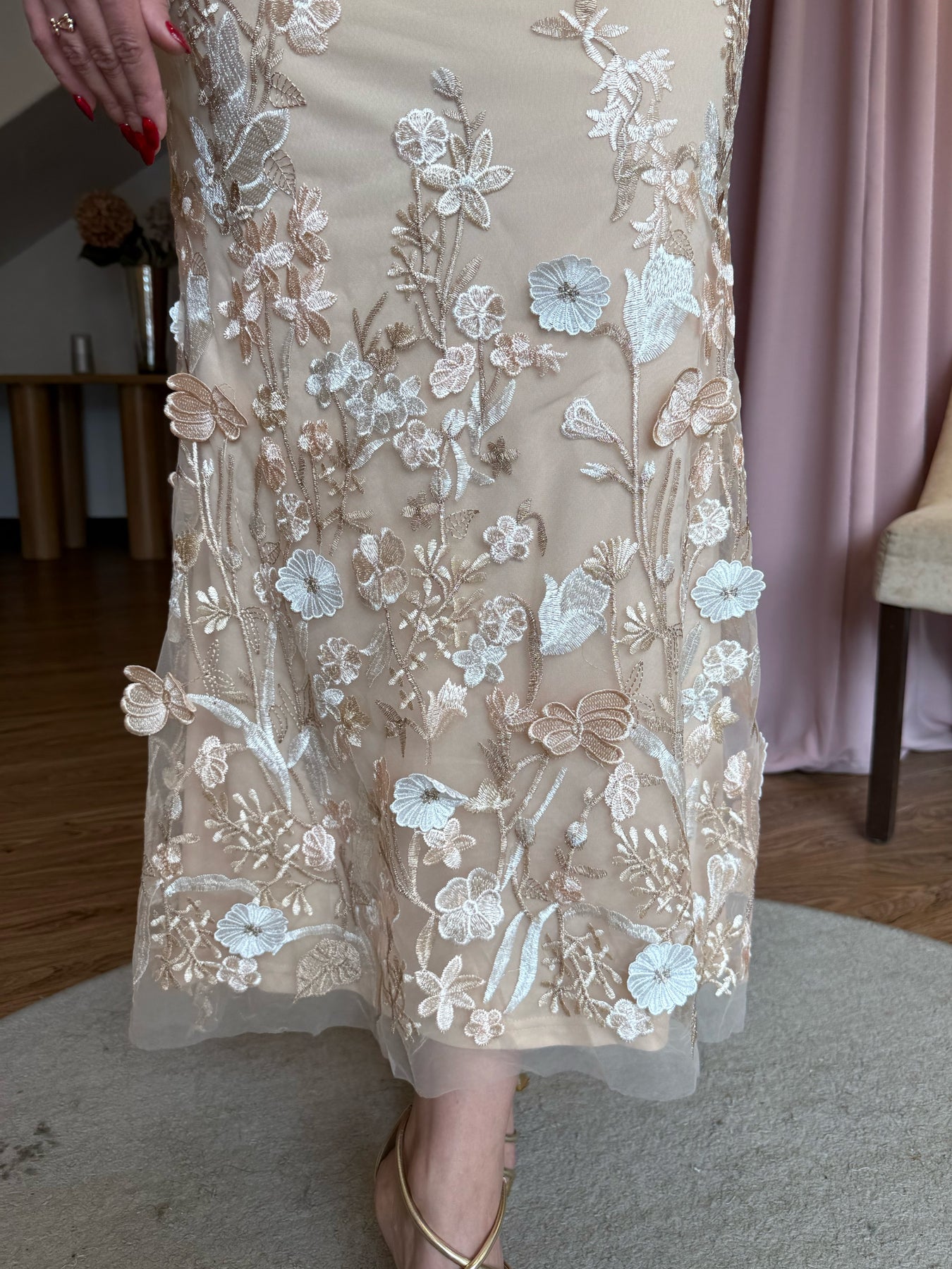 Tul beige aplicación flor 3D
