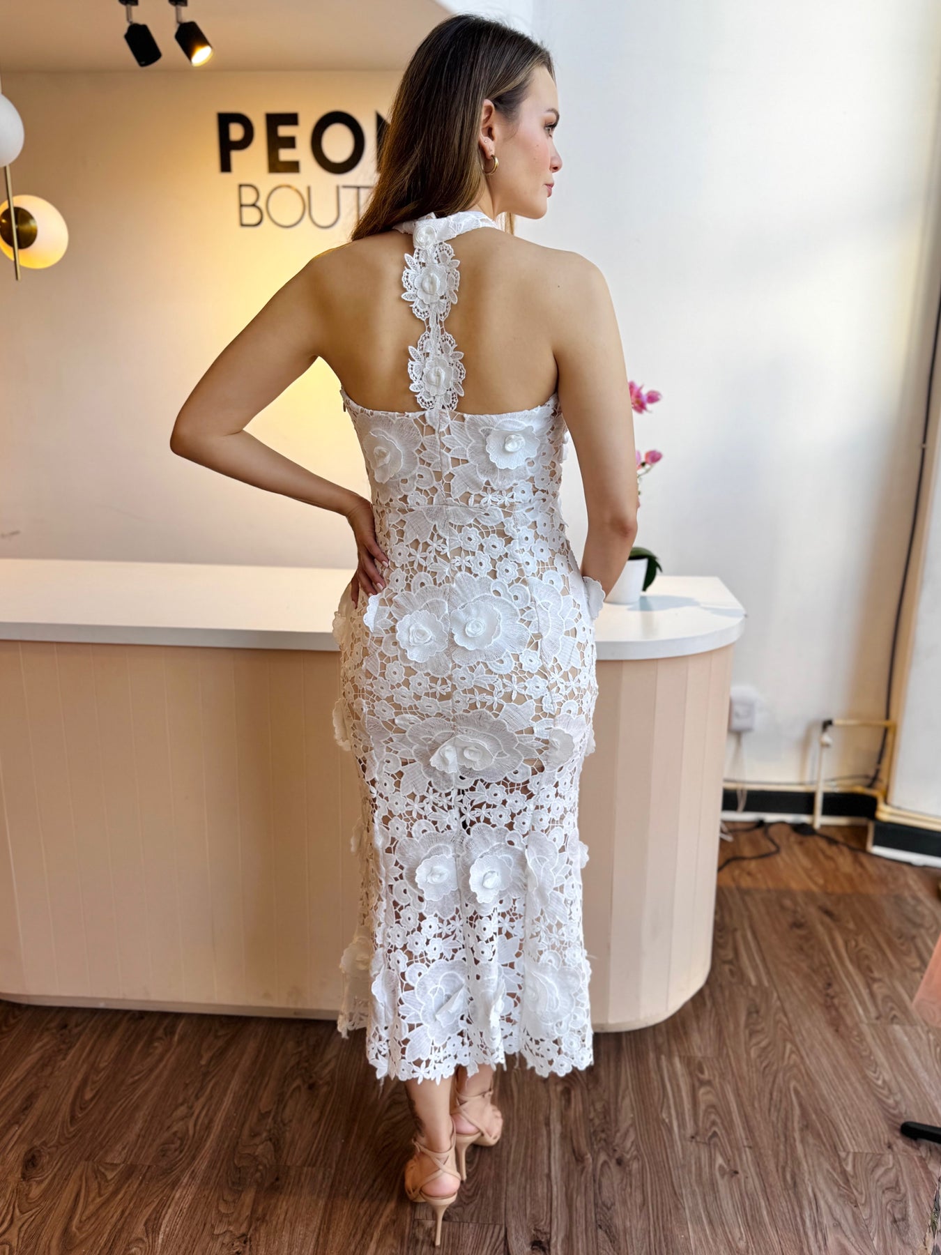 Vestido halter línea espalda flores