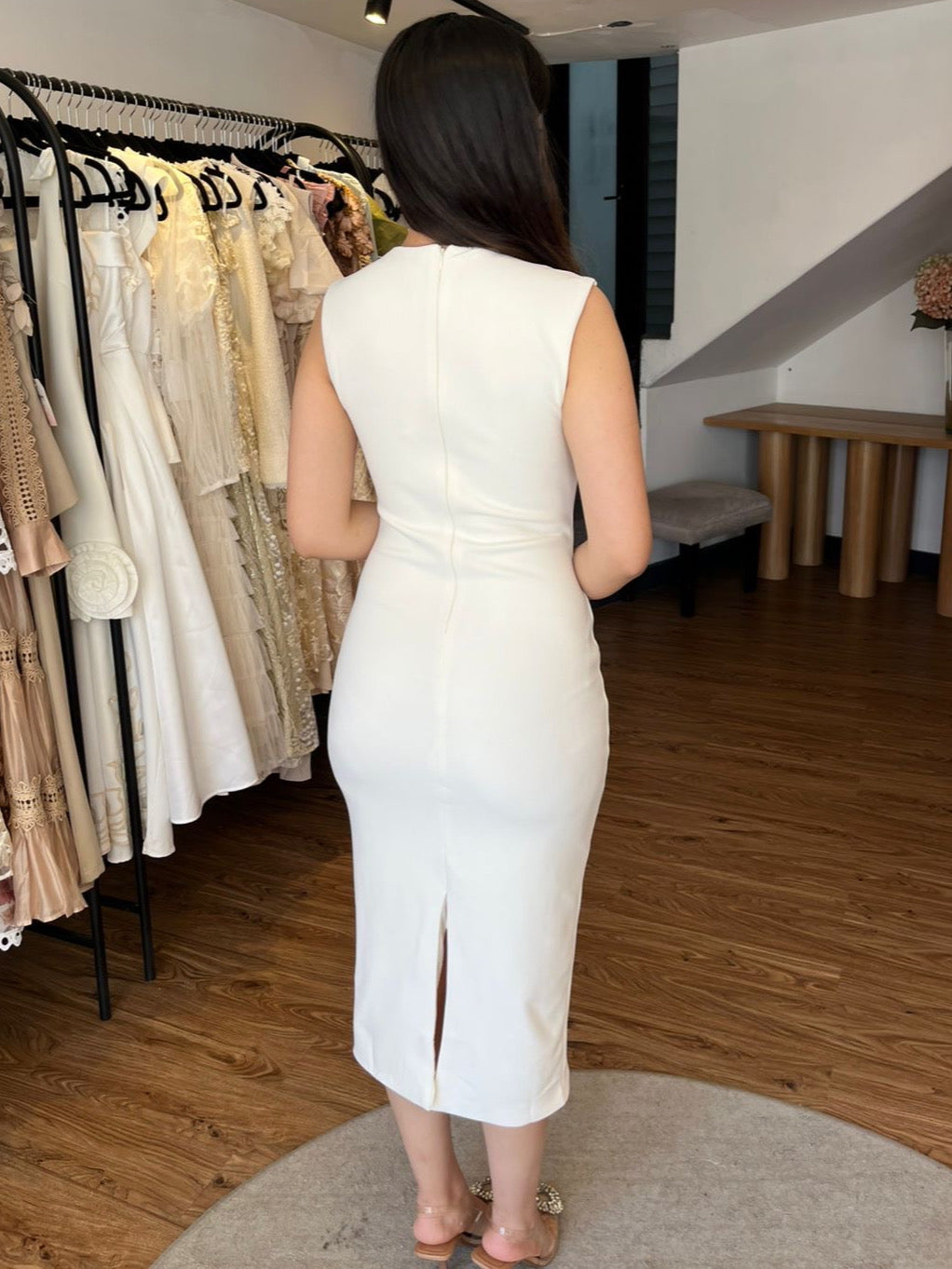 Vestido lápiz liso blanco